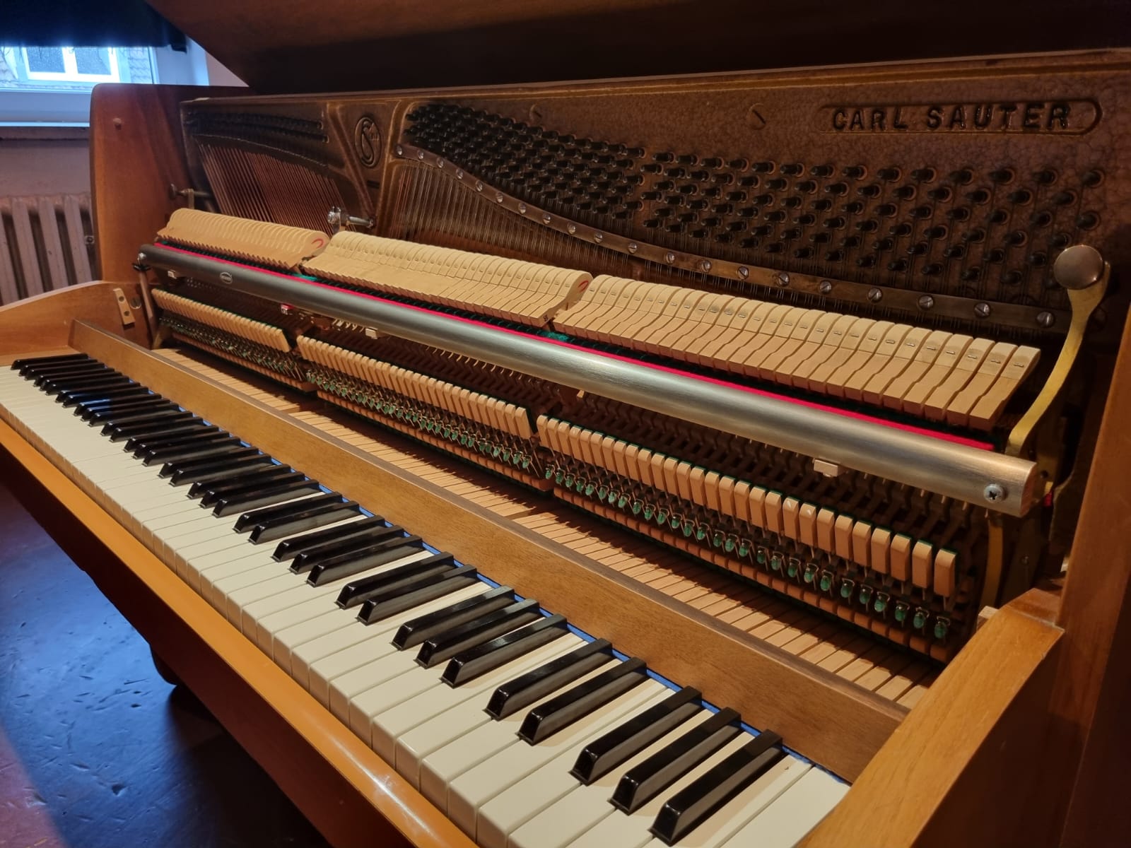 - Klaviatur überarbeitet, geschliffen, poliert und alle Garnierungs- und Druckfilze erneuert